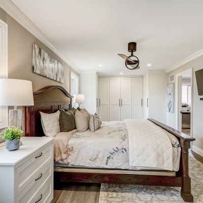 Serene Primary Bedroom Has A Spa-Like Ensuite Bath And Custom Wardrobe Cabinets Fit For Any Fashion Lover.