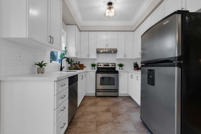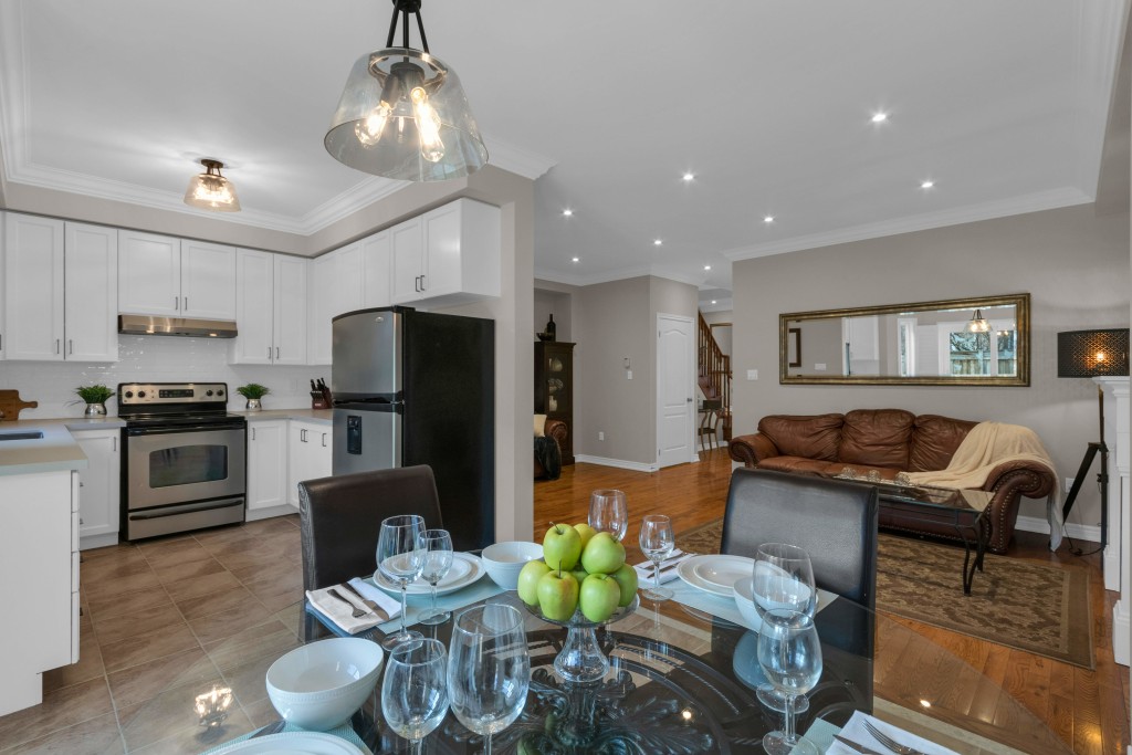Bright Open-Concept Main Floor With Smooth Ceilings, Pot Lights, Crown Moulding, New Baseboards/Trim, Upgraded Light Fixtures, Fresh Paint, And Re-Grouted Flooring. Modern Renovated Kitchen With Professionally Repainted Cabinets, Quartz Caesarstone Ash White Counters, New Sink/Fixtures, New Backsplash, Updated Plugs, New Hardware, Updated Sliding Door (2018). Spacious Family Room With Custom Electric Fireplace Feature Wall & Updated Powder Room.