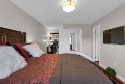 Professionally Finished Basement With Quality Construction: Plastic-Wrapped Base Plates, Full Insulation And Vapour Barrier, Sealed Concrete, Pot Lights, Large Rec Room, Kitchenette, Bedroom Area, Electric Fireplace With Custom Black Slate Mantle, And Travertine Flooring In Bath/Laundry With Travertine Shower. Includes ¾-Inch Water Line Rough-In For Future Sprinkler System And Fresh Trim/Paint.