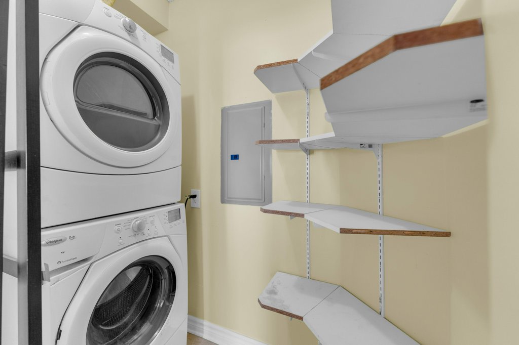 - Included: All Existing Frigidaire Gallery Stainless Steel Appliances: Fridge, Stove, Built-In Dishwasher, Built-In Microwave, Whirlpool Stackable White Washer and Dryer, All Window Coverings, All Electrical Light Fixture, Exclusive Use Of Parking and Locker.